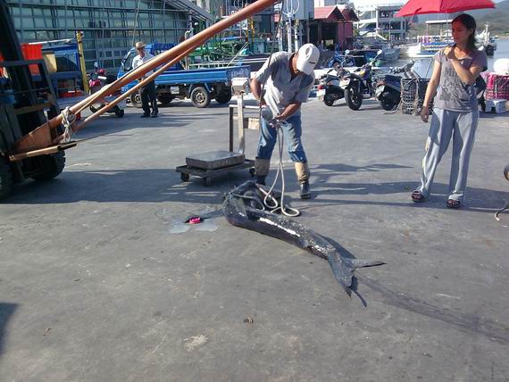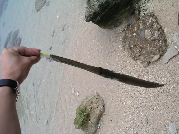 後來阿文在淺灘釣到這隻馬鞭魚...