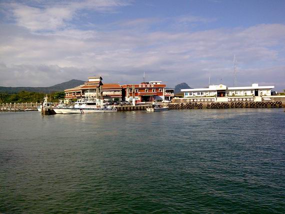 美麗的橘子兵?...不...是雄丸號剛好進港,哨所正下方那艘,正在受檢,準備進港泊船....