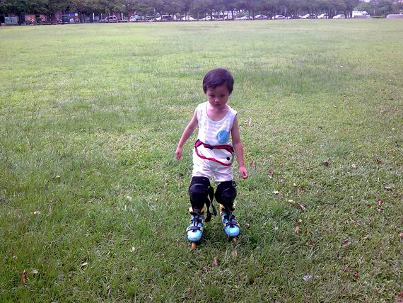 星期六帶他去學他自己說要學的直排輪,結果穿上鞋子後,畏縮的個性又再出現,當然我的火就上來了
