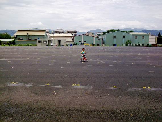 接近中午的大太陽下,兩父子努力的想辦法要把自行車學好