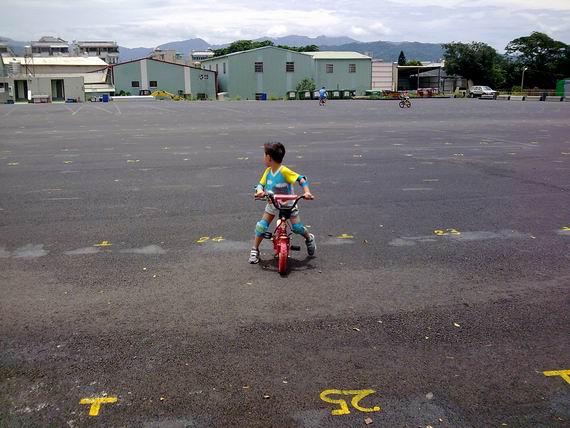 星期天吃過早餐,他主動來跟我說要去學騎自行車