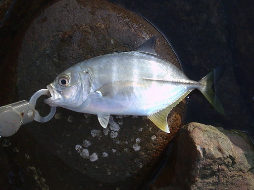 起初還以為是白帶,看到水中魚身上的銀白閃光後,高興得不得了...瓜瓜進來了~~
